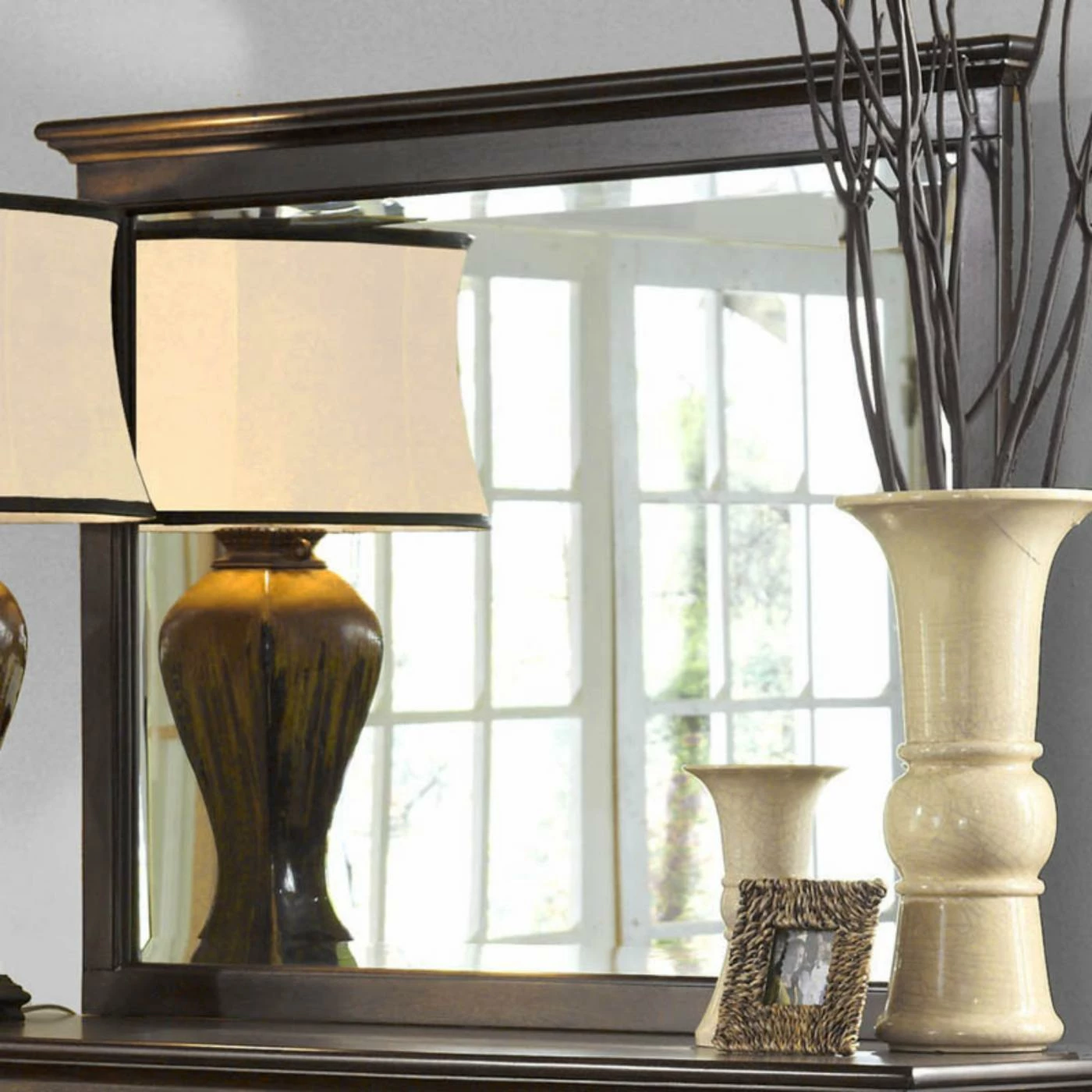 - Optional mirror with mahogany frame