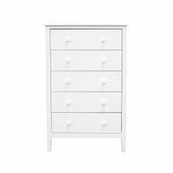 Clean your bedroom, organize your clothes, and add a level of style with the Adeptus Easy Pieces 5 Drawer Chest. This chest has a solid pine wood construction and comes in a variety of finishes. The five drawers provide plenty of space for your clothes and accessories. With this much space you are able to fit your jeans and T-shirts, and hide away those seasonal clothes. Use the first drawer to hold your jewelry box and place decorating items on the top of this chest.