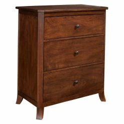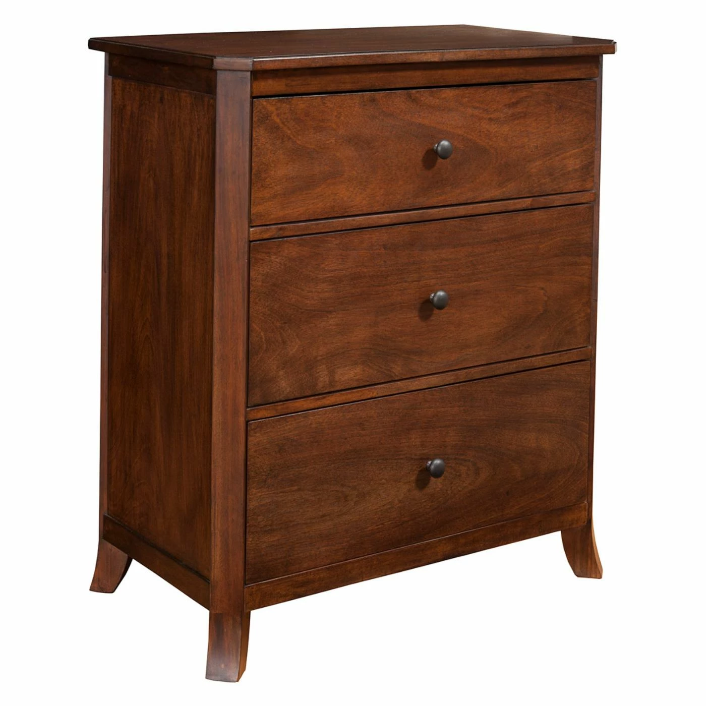 When you need a little bit of stylish storage, look to the Alpine Furniture Baker 3 Drawer Chest. Constructed of solid mahogany and veneers, this chest is available in your choice of finishes. Ball bearing metal drawer glides allow for effortless opening and closing of the drawers, which are constructed of the highest quality with French and English dovetailing. The ample storage space in the drawers makes this an ideal piece of furniture for any room in the house where you’re wanting to store items out of sight, but still want a cohesive look to your dΓ©cor. With a nod to Craftsman style, this chest’s simple yet elegant features allow it to complement a wide range of tastes and styles.
