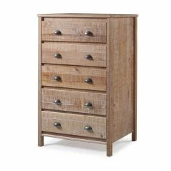 There’s plenty of storage space for all of your necessities in the Camaflexi Baja 5 Drawer Chest. Boasting five spacious storage drawers all made from solid pine wood, this chest features durable metal glides. Choose from available finish options to make it yours. Assembly required.