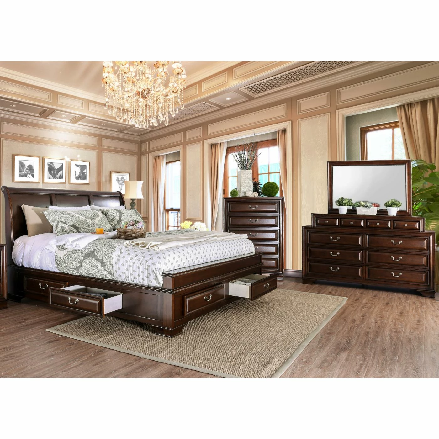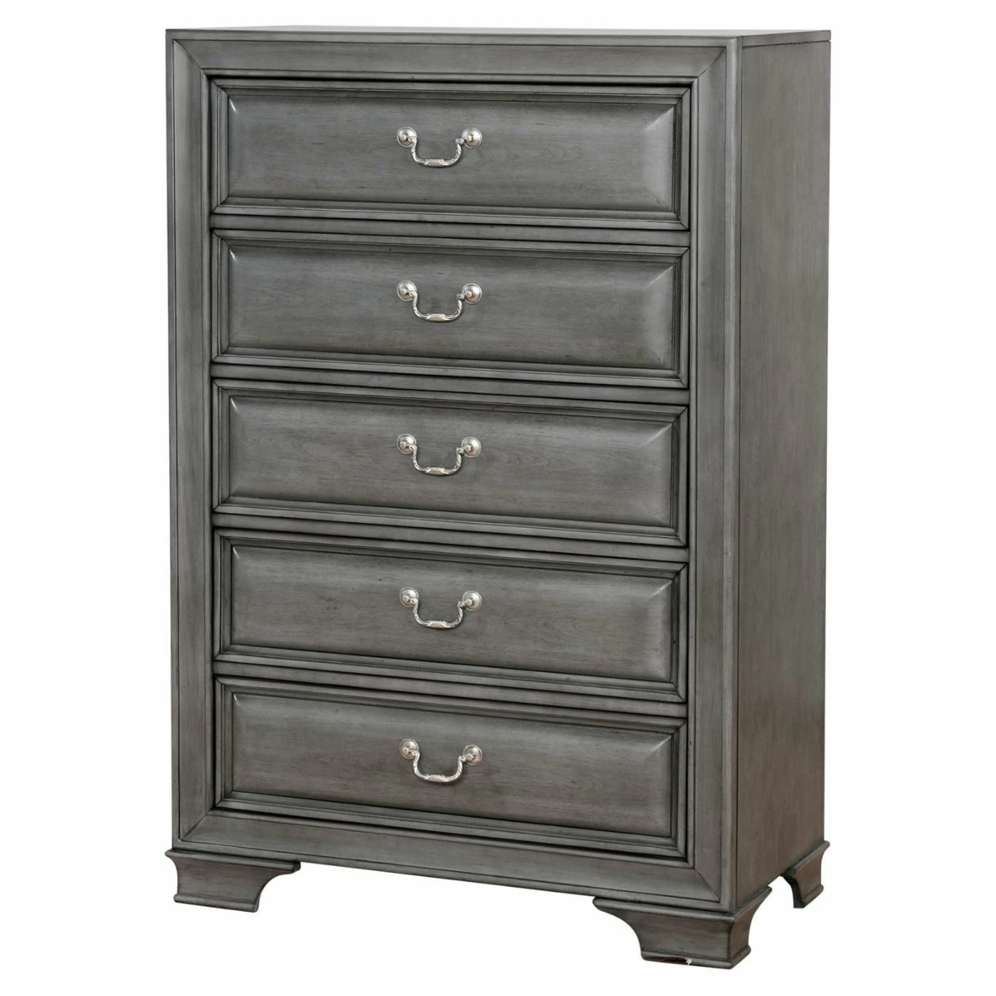 Get your wardrobe organized and safely stowed with the Furniture of America Damien Wooden 5 Drawer Chest. This handsome chest is built from wood with five drawers built into its face. Each drawer has smooth glides and metal handles. Framed, molded-centers accent the drawer fronts. Choose your desired finish option from the available.