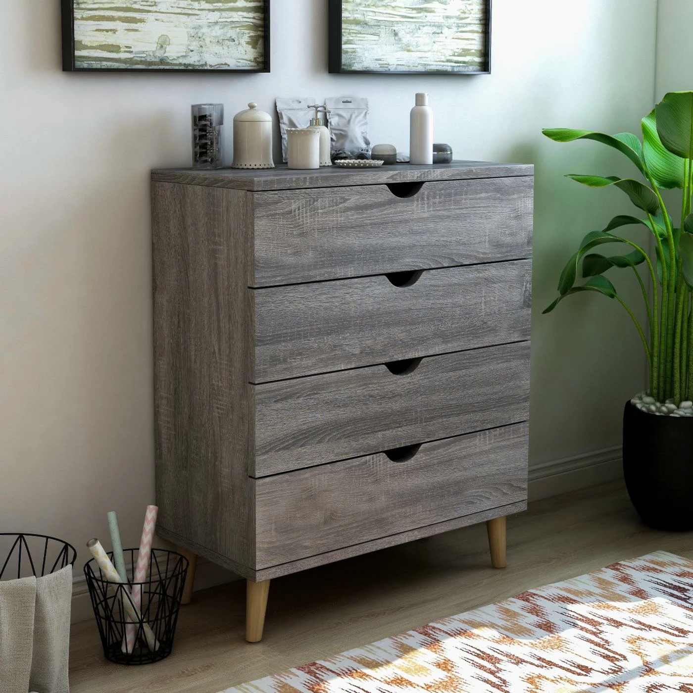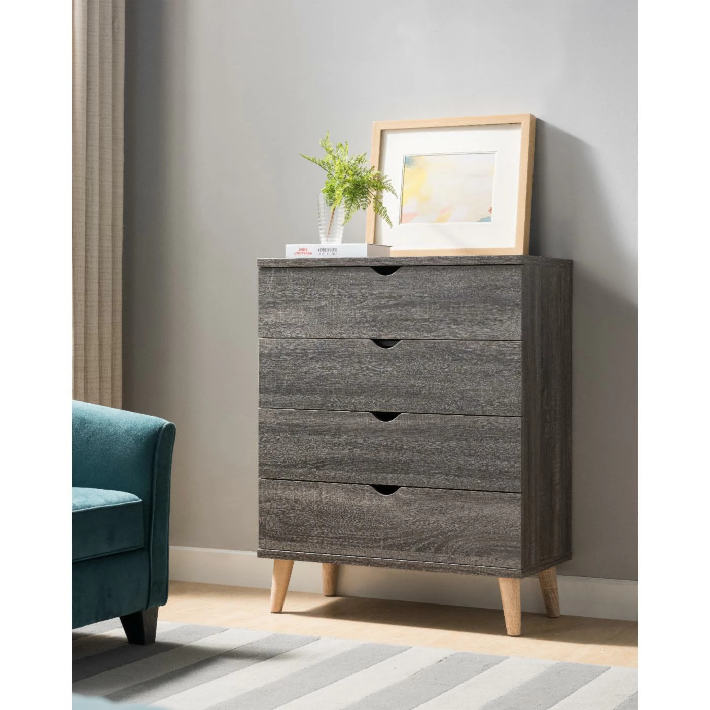 - Four spacious drawers with cut out handle