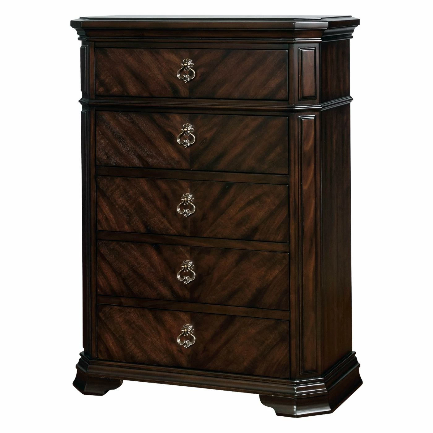 Exhibiting exceptional craftsmanship, the Furniture of America Petersen 5 Drawer Dresser Chest offers you the perfect storage solution. You’ll love this sophisticated dresser chest with a total of five wide drawers adorned with silver metal pull hardware. Carved detailing and a deep espresso finish round out its timeless look.