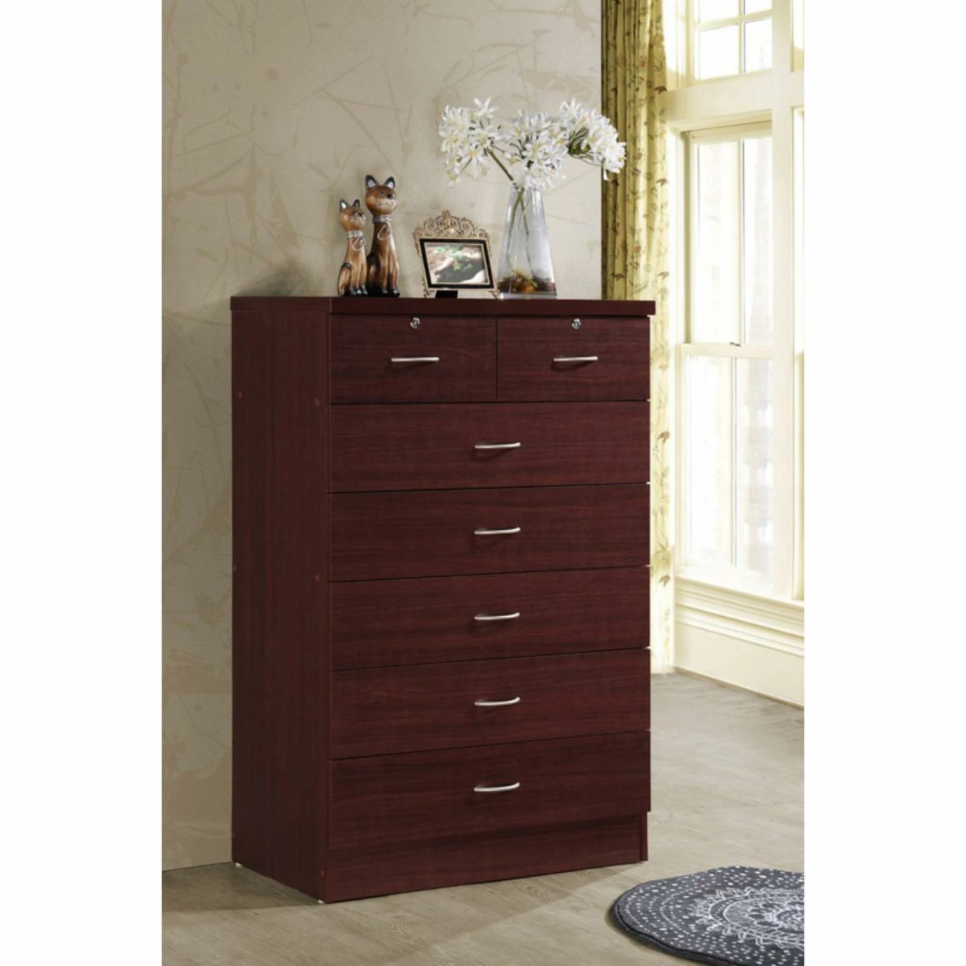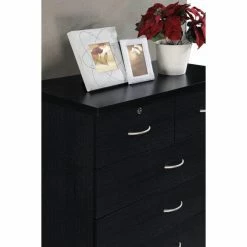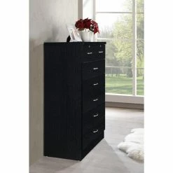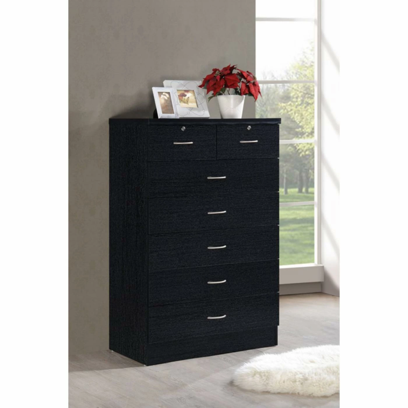 Seven drawers give you plenty of space to keep clothes organized in the Hodedah Imports 7 Drawer Chest. The compressed wood frame ensures durability for years of use. Silver-tone handles accent the contemporary style and make it simple to pull the drawers open.