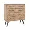 Styled to satisfy particular tastes, the Hooker Furniture Hill Country Gillespie 5 Drawer Chest conveys a sense of rustic freedom: no fences, no obligations, no regrets. This chest is made with painstakingly selected white oak and walnut veneers with stunning grain patterns. Slab feet have rounded edges and corners. The custom metal hardware in an antiqued finish features shaped back plates and reflects an era of hand-wrought iron as a staple in the home. The top drawer has a drop-in felt liner and the bottom drawer is cedar-lined to protect your favorite sweaters.