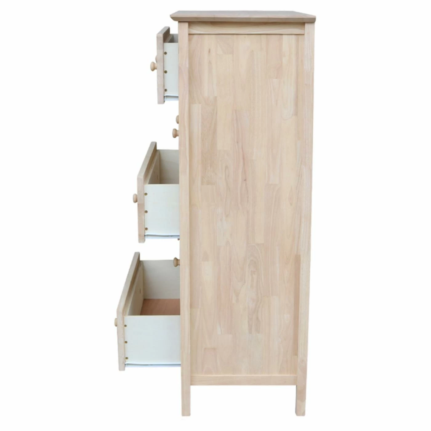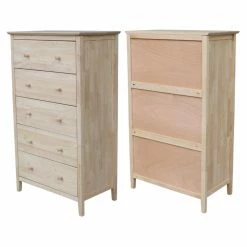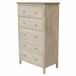 This solid wood International Concepts Chest with 5 Drawers is built to last. It includes five generous drawers with classic wood knobs and EuroGlide drawer glides for easy operation. The chest is left unfinished and ready for you to customize.