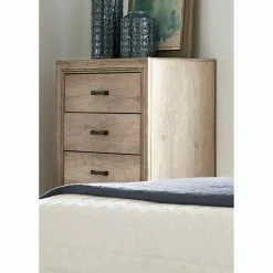 For abundant storage that doesn’t take up much floor space, choose the Liberty Furniture Industries Sun Valley 5 Drawer Chest. Its five English dovetail drawers are stacked vertically and operate on premium Kenlin glides. This contemporary chest boasts clean lines, framed drawer panels, and bracket feet. It has a solid rubberwood frame with melamine in a sandstone finish that allows the wood grain to shine.