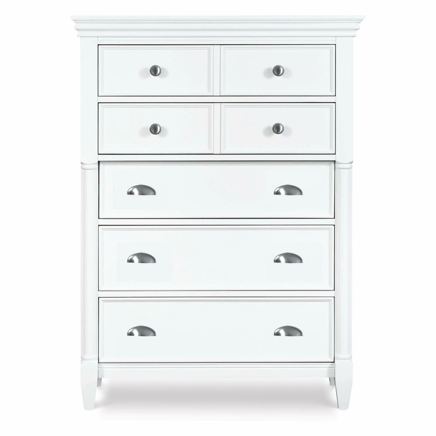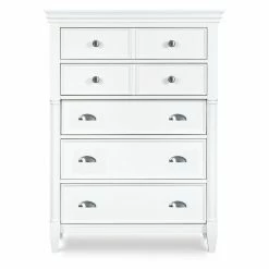 The Kasey 5 Drawer Chest will leave you wanting for nothing, be it loads of storage space or timelessly elegant style. Crafted from solid hardwoods, MDF, and finished in brilliant white, this piece will become a vital addition to your home decorating scheme.