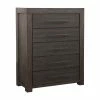 Adorn your home with antique country style by choosing the Modus Ella Solid Wood 5 Drawer Chest. This five-drawer dresser features acacia wood construction. The scalloped edges and classic white wash finish create a look fit for the farmhouse. The finish was applied by wire brush to create a historical feel. Each drawer features metal pulls, and offers ample storage space.
