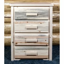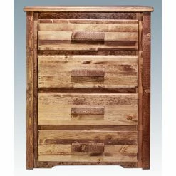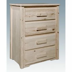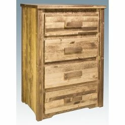 Those who prefer a more rustic, homestead feel to their furniture will fall in love with this Montana Woodworks Homestead 4 Drawer Chest. Crafted of exquisite solid pine wood, this chest is equipped with easy glide and spacious drawers that can hold loads of items. Offered in your choice of available finish, this American-made chest also boasts artisan quality handcrafting and arrives completely set up to your home.