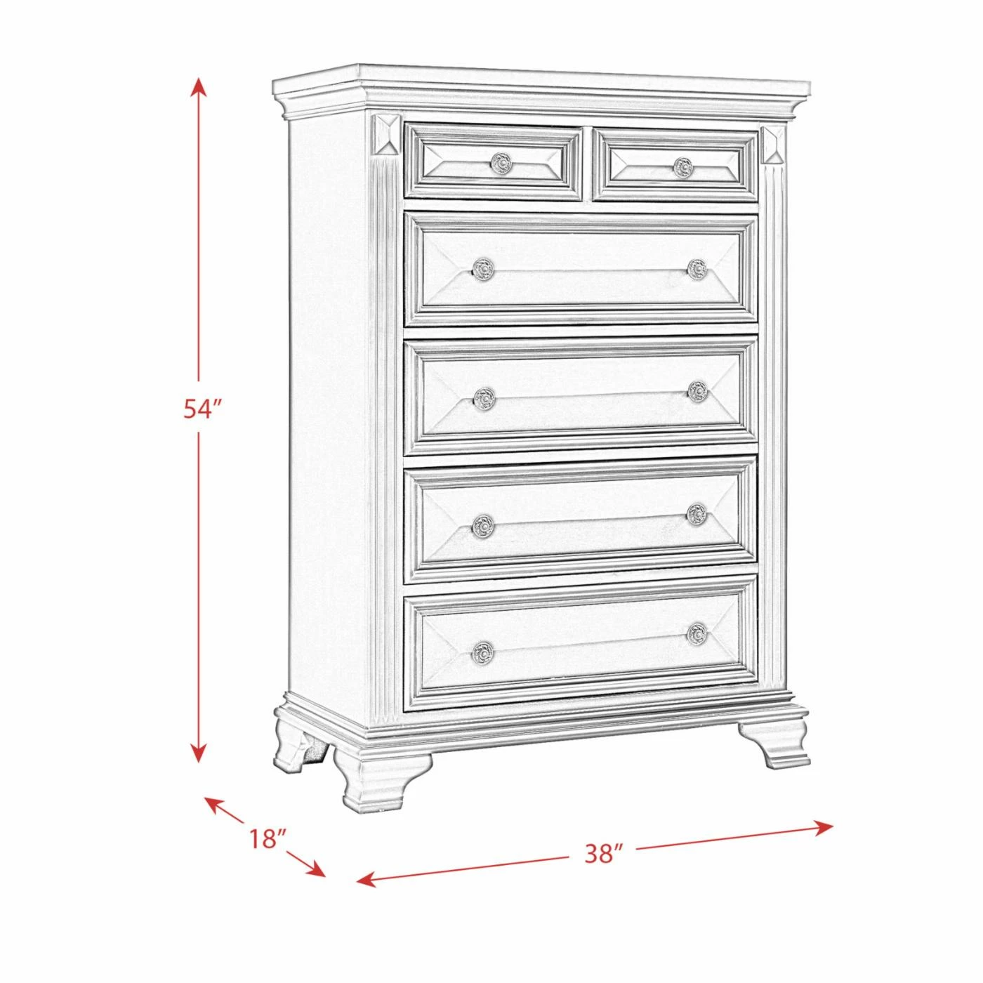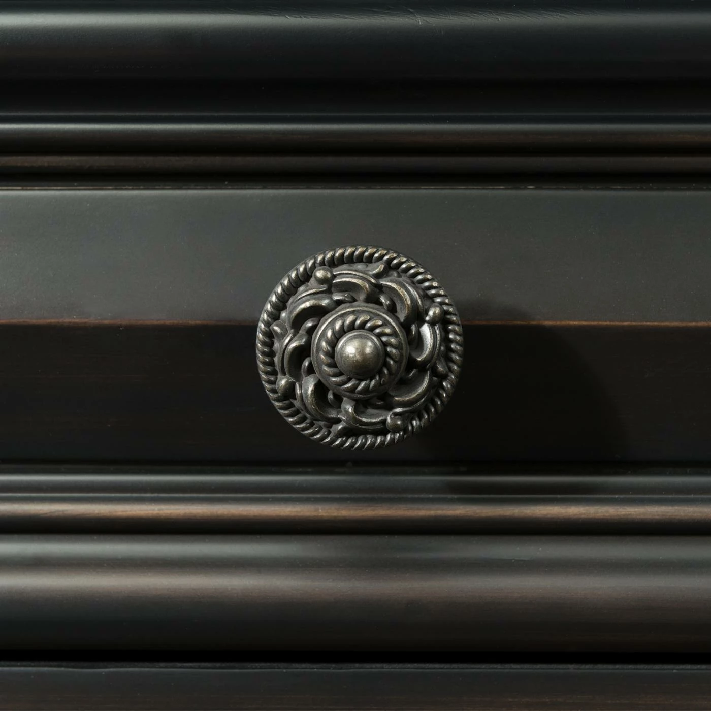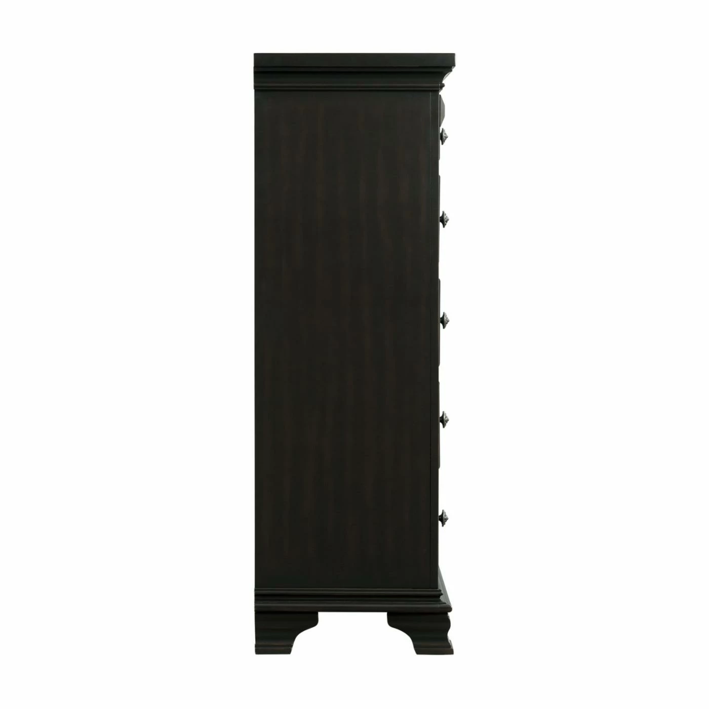 The form of the Picket House Furnishings Trent 6 Drawer Chest definitely has some traditional roots, but the sleek finish of antique black hints at a bit of glam. The tall design of this dresser offers you six drawers, each with a raised, beveled face and vintage-style metal pulls with your choice of available finish options. The upper drawer is lined with black velvet and the lower drawer is dust-proof and constructed with cedar lining to ward off insects and keep your clothes fresh. The body of this chest is crafted from a mix of solid acacia and pine hardwood with engineered wood elements. An anti-tip kit is included.