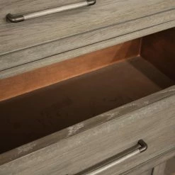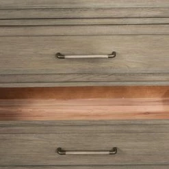 Five drawers offer generous storage for shirts, pants, seasonal items, and more. Each of those drawers has dovetail joinery, and ball-bearing extension guides provide smooth opening and closing. This eye-pleasing piece is made for durability and lasting quality.