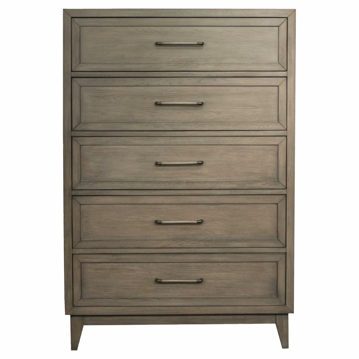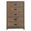 A breath of fresh style, the Riverside Furniture Vogue 5-Drawer Chest showcases the impact of minimalist modern. Crafted of strong poplar solids and oak veneer finished in a well-worn Gray Wash, this chest wows with clean lines, sleek drawer pulls, and tapered feet.