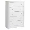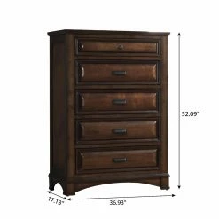 Defined by heavy, substantial lines, the Roundhill Furniture Broval 5 Drawer Chest makes a bold statement in any bedroom. The durable, solid hardwood chest features five sturdy dovetail drawers with understated metal pulls. Velvet lining makes the top drawer an ideal place to store delicate items.