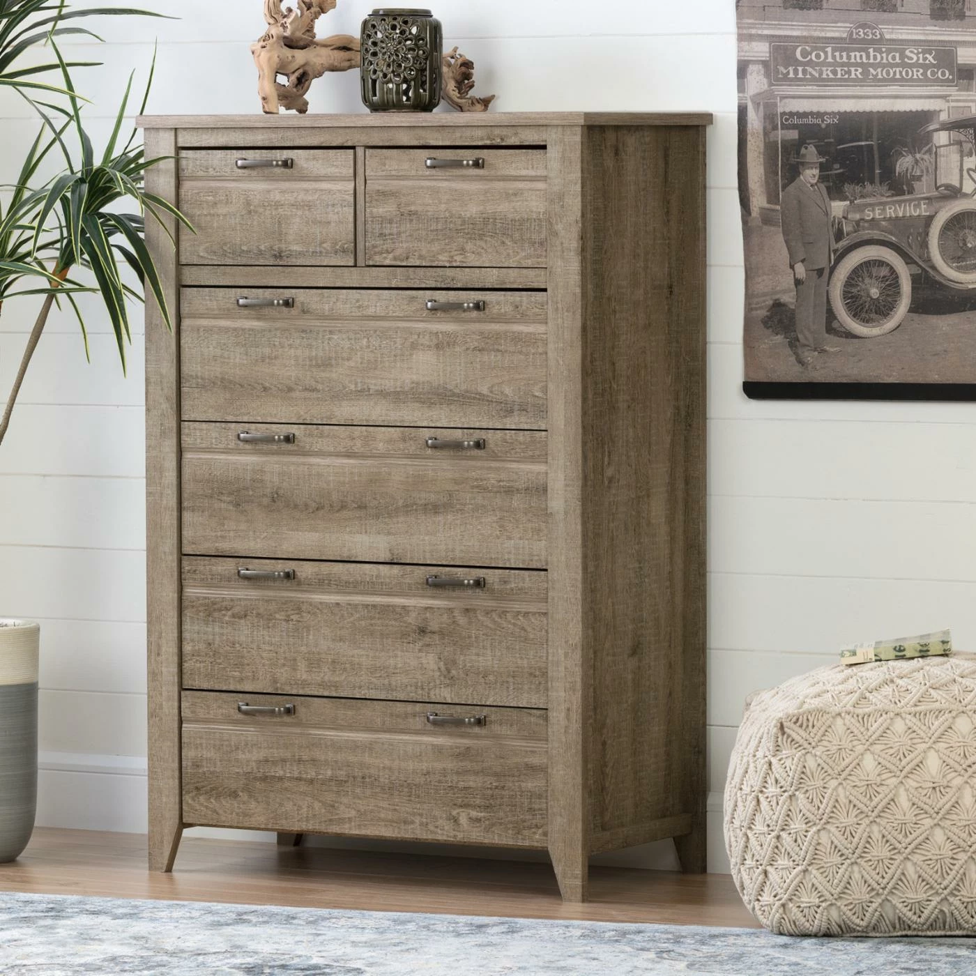 Fusing farmhouse design with modern style, the South Shore Lionel 6 Drawer Chestis the perfect mix of charm and elegance. Made to provide ample storage space to your master or guest bedroom, this dresser features two smaller top drawers and three large bottom drawers so you can keep everything from clothes and blankets to jewelry and lingerie neatly tucked away. Its non-toxic, laminated particleboard construction is strong and durable while the choice of finish complements most dรฉcors.