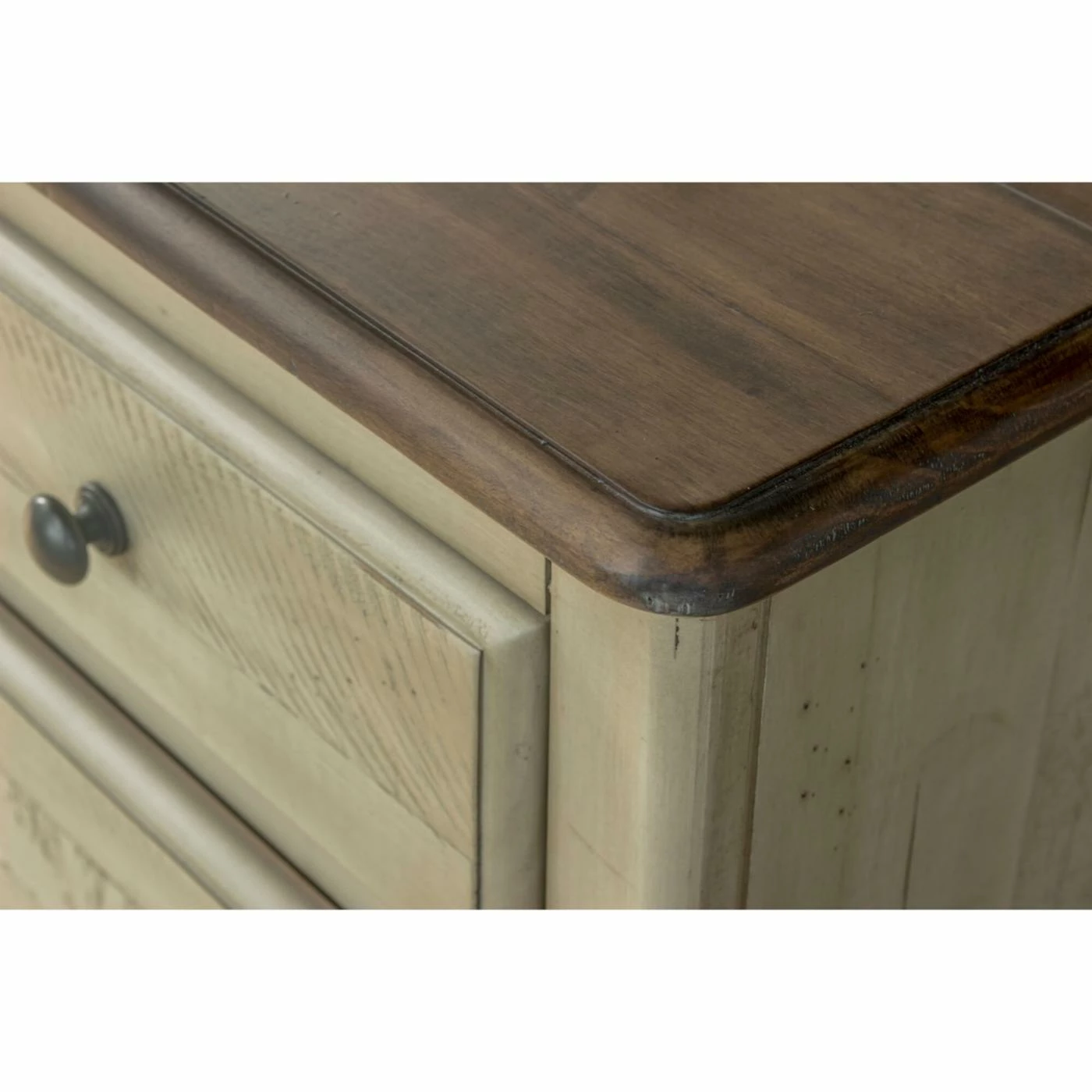 - Wire-brushed antique white finish