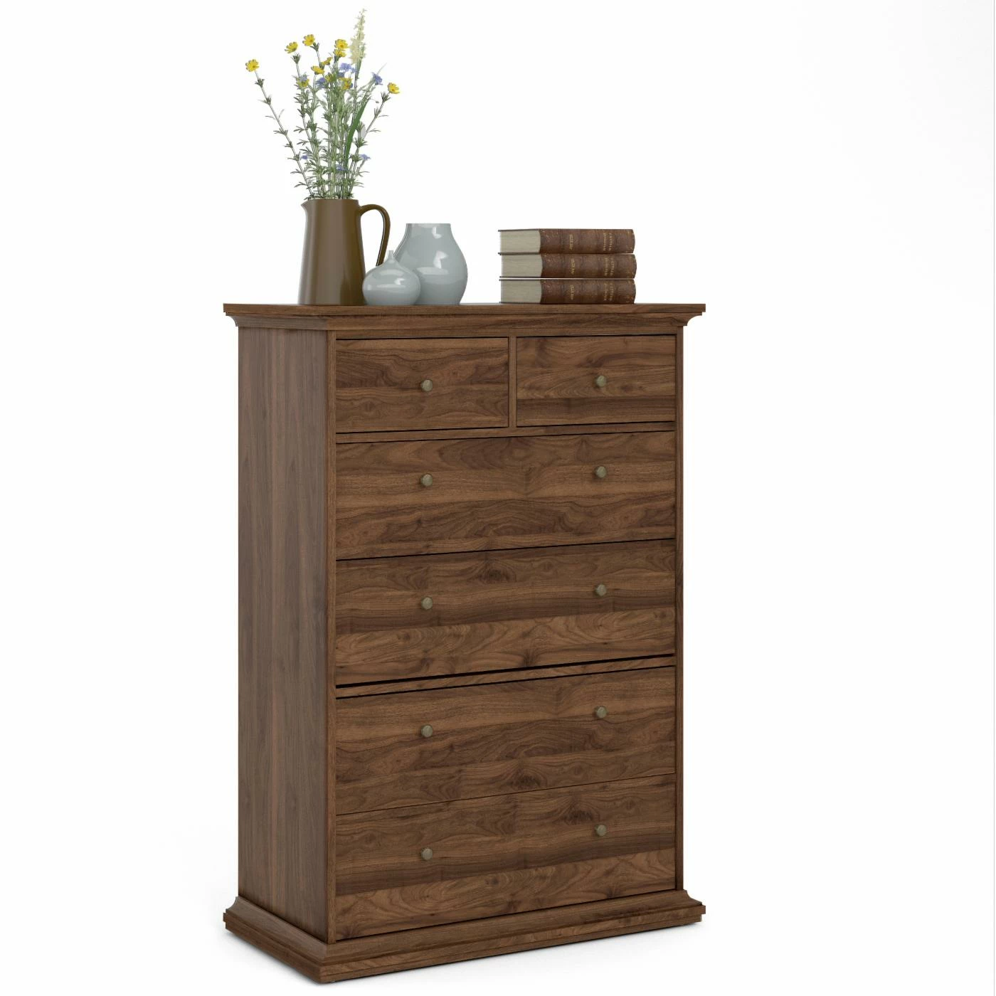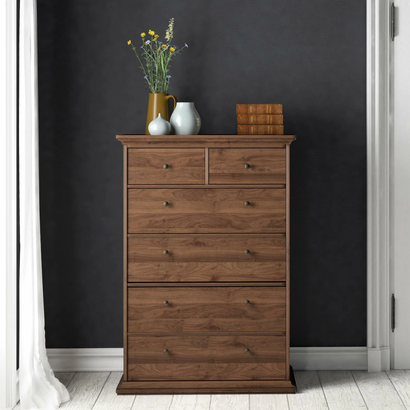 Crown molding and simple round knobs give the Tvilum Maison Park 6 Drawer Bedroom Chest transitional appeal to complement any bedroom style. This engineered wood chest has four full-length drawers and two smaller drawers on top to hold your entire wardrobe and accessories. Metal drawer liners create easy-clean surfaces. This bedroom chest comes in your choice of available finish to blend with the rest of your bedroom décor.