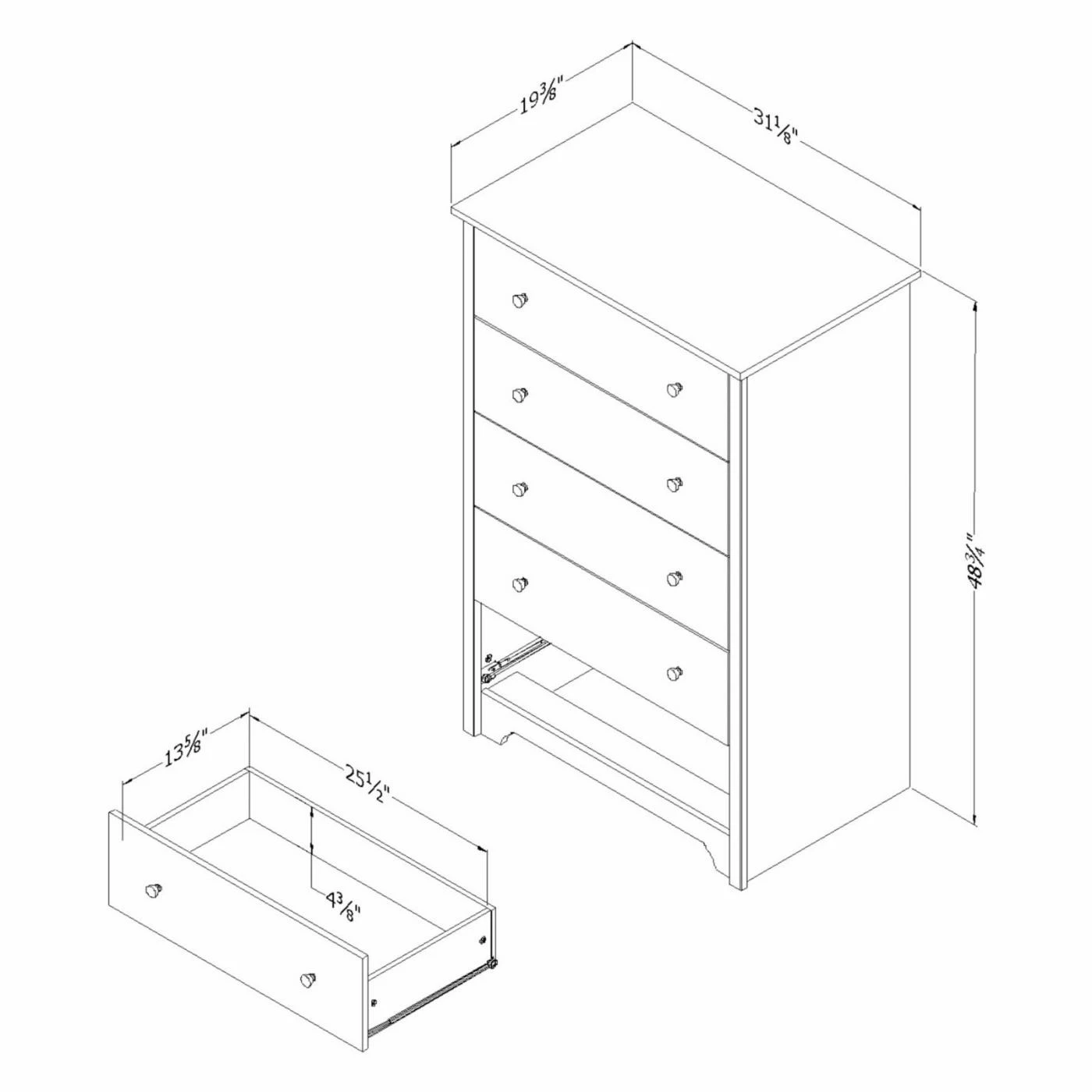 Featuring five deep storage drawers stacked vertically, the Vito 5 Drawer Chest by South Shore gives you plenty of storage space but has a compact footprint to take up a minimal amount of room in your floor plan. Versatile enough to look at home in rooms done in many decorating styles, the chest has a simple, sleek design with squared off corners and a decorative kick plate. The engineered wood chest will resist wear and tear through years of daily use and is lightweight, so you can move it with ease when you need to clean or are ready to rearrange your room. Each drawer is positioned on a metal slide for easy opening and closing.