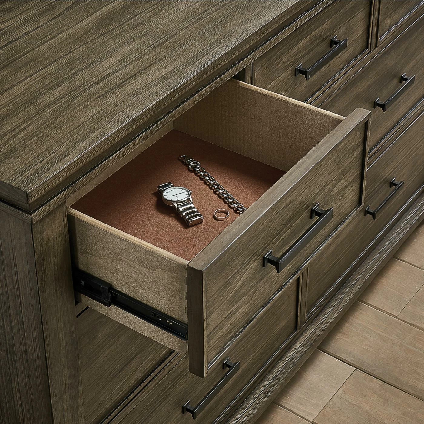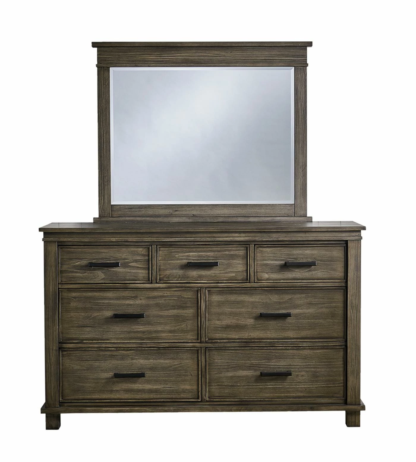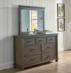 Add storage to your bedroom with the A-America Glacier Point 7 Drawer Dresser. This dresser is equipped with three felt-lined top drawers and four deep drawers on the bottom. It’s durably constructed from New Zealand pine wood and finished with a gray stone color. Each drawer is outfitted with a simple iron bar pull for opening and closing. Add the optional, matching mirror to complete the set.