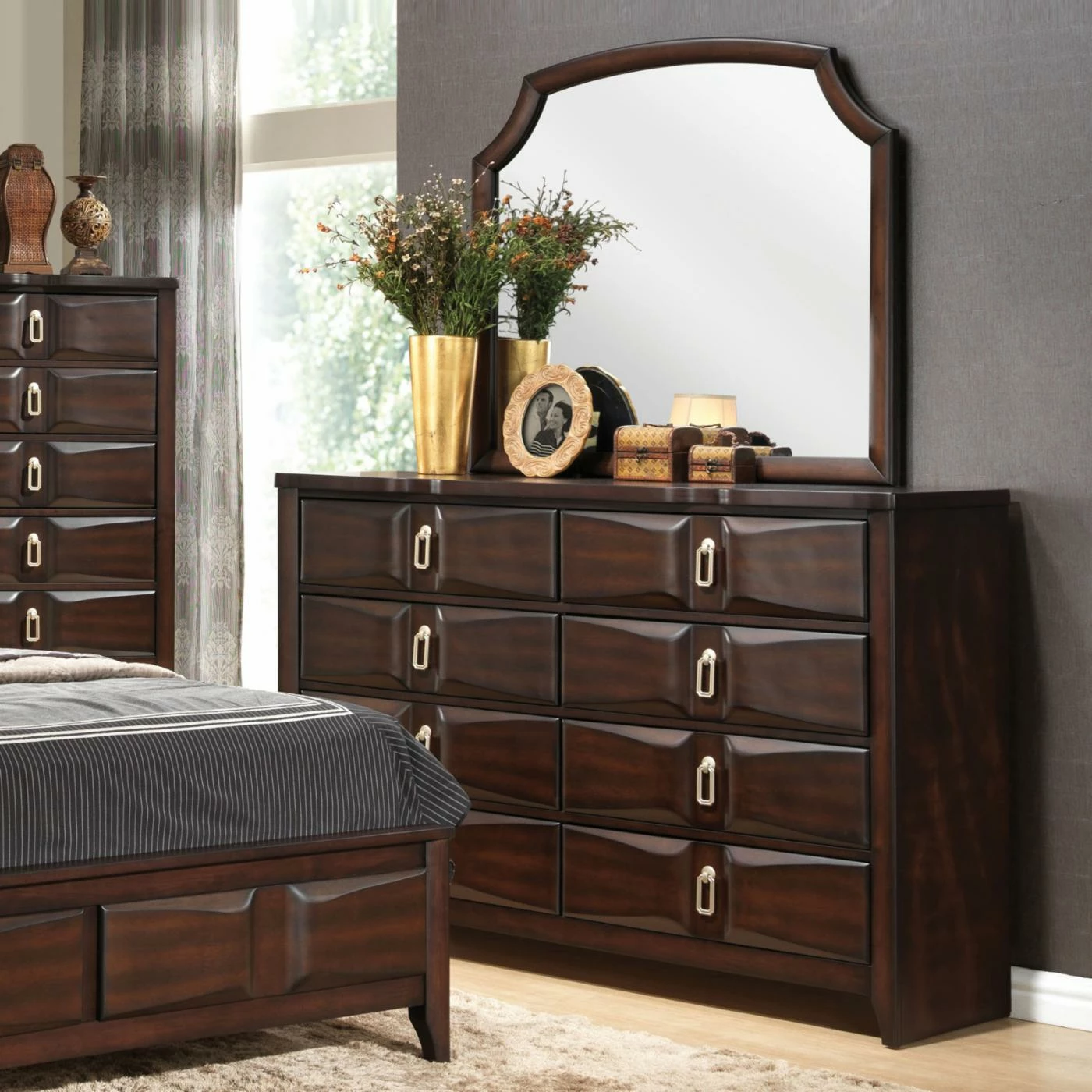 Give your master bedroom a makeover with the Acme Furniture Lancaster Espresso 8 Drawer Dresser with Optional Mirror, that brims with attention-getting flair. This dresser and its optional mirror are crafted from solid hardwoods and boast a rich espresso finish. The dresser features eight spacious drawers complemented by decorative raised panels and chic gold-tone hardware. With its upscale look, this dresser will add focal point allure to your bedroom dΓ©cor.