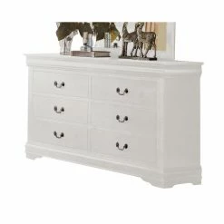 With its clean lines and classic style, the Acme Furniture Louis Philippe Dresser with Optional Mirror complements any dรฉcor. Crafted from wood and engineered wood for durability, this dresser will continue to look beautiful even after years of use. Six drawers make it simple to keep your clothes organized and off your floor. Select from available finishes to find the perfect match for your master or guest bedroom. The optional mirror, with a wooden frame, completes the set.