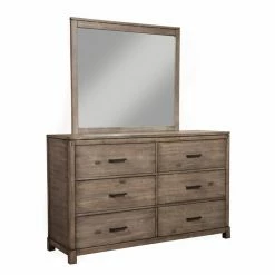 Retreat to your rustic haven with the Alpine Furniture Sydney 6 Drawer Dresser. Designed and built to add functionality and timeworn appeal to your bedroom, this dresser is carefully crafted with dovetail joinery in the corners of each drawer. The top drawer is felt-lined, and all work smoothly on ball bearing glides. The weathered gray finish is lightly wirebrushed and coordinates nicely with matte bronze hardware.