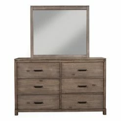 Retreat to your rustic haven with the Alpine Furniture Sydney 6 Drawer Dresser. Designed and built to add functionality and timeworn appeal to your bedroom, this dresser is carefully crafted with dovetail joinery in the corners of each drawer. The top drawer is felt-lined, and all work smoothly on ball bearing glides. The weathered gray finish is lightly wirebrushed and coordinates nicely with matte bronze hardware.