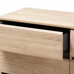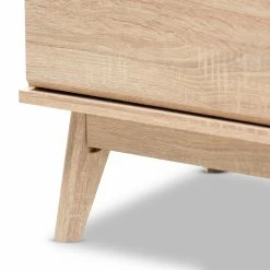 Fans of mid-century modern pieces will flip for the Baxton Studio Miren Mid-Century Modern 6 Drawer Dresser. This dresser boasts six pull-out drawers that move smoothly along metal glides for easy in and out access. The light oak finish and woodgrain detail ensure an authentic wood appearance. This dresser also rests on angled, tapered legs for stability.