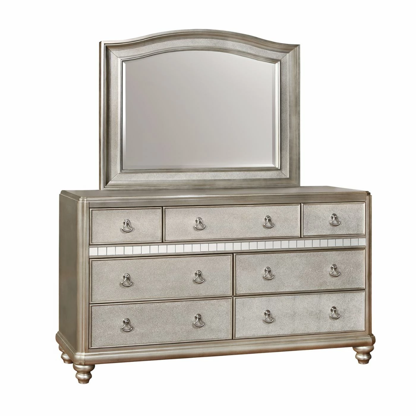 The Coaster Furniture Bling Game 7 Drawer Dresser enlivens your space with its shimmery finish and sculpted drawer pulls. Stacked bun feet give it an added dose of visual charm and spacious drawers ensure you’ll have plenty of room for tucking away clothes and mementos. Order dresser only or with the mirror.