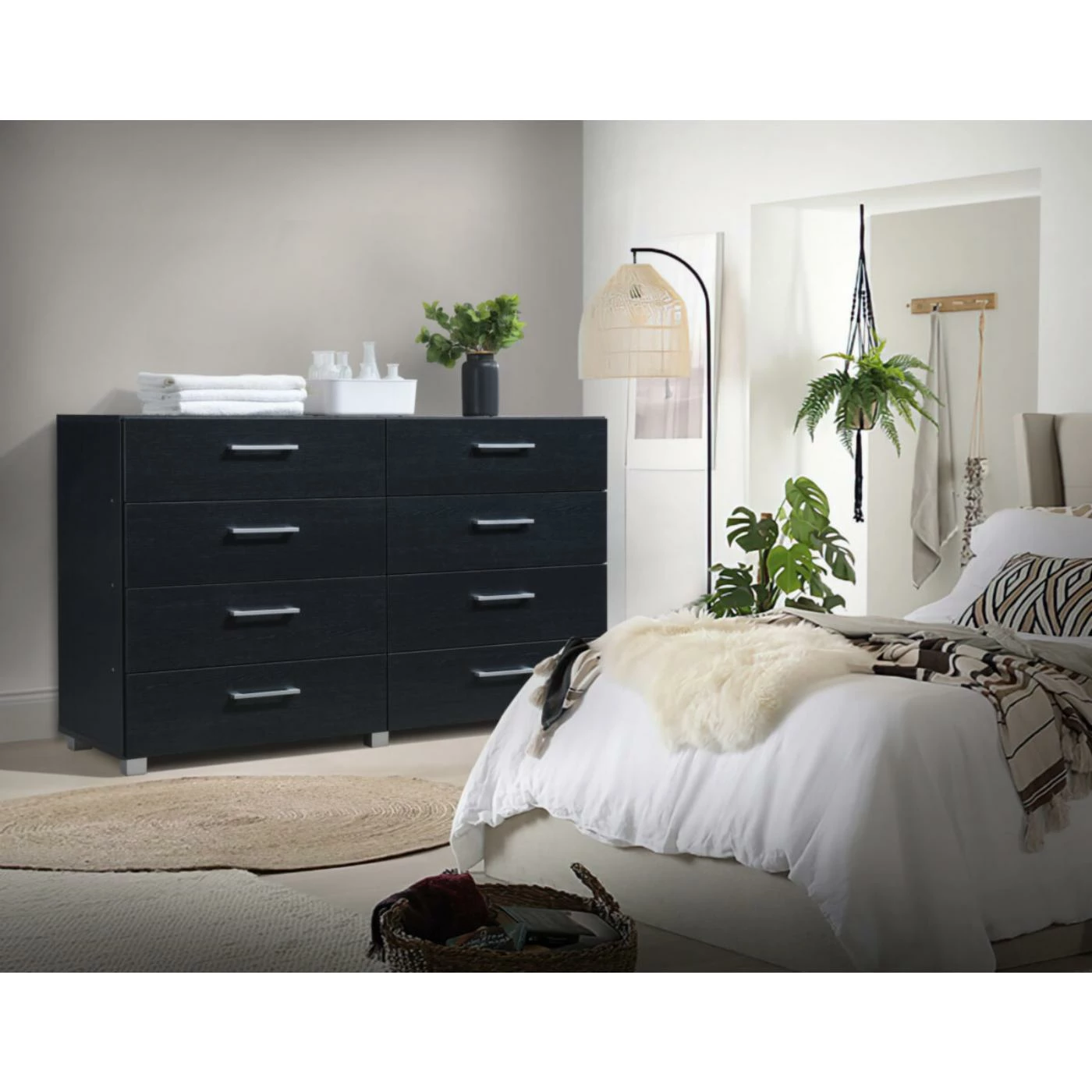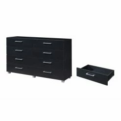 This roomy 8-Drawer Dresser, provides all the space you need to store your clothes and undergarments as well as room to display your dΓ©cor items on top of it. With its clean lines and minimal style, it easily pairs with a variety of other styles including transitional and modern, so that you can incorporate it into your room. Metal roller glides and built-in safety stop are included on the drawers so that the user experience is as smooth as possible.Β It is manufactured entirely out of engineered wood which makes it durable. Available in four different colors to perfectly fit your interiors. To ensure proper assembly, please follow all steps provided in the installation manual