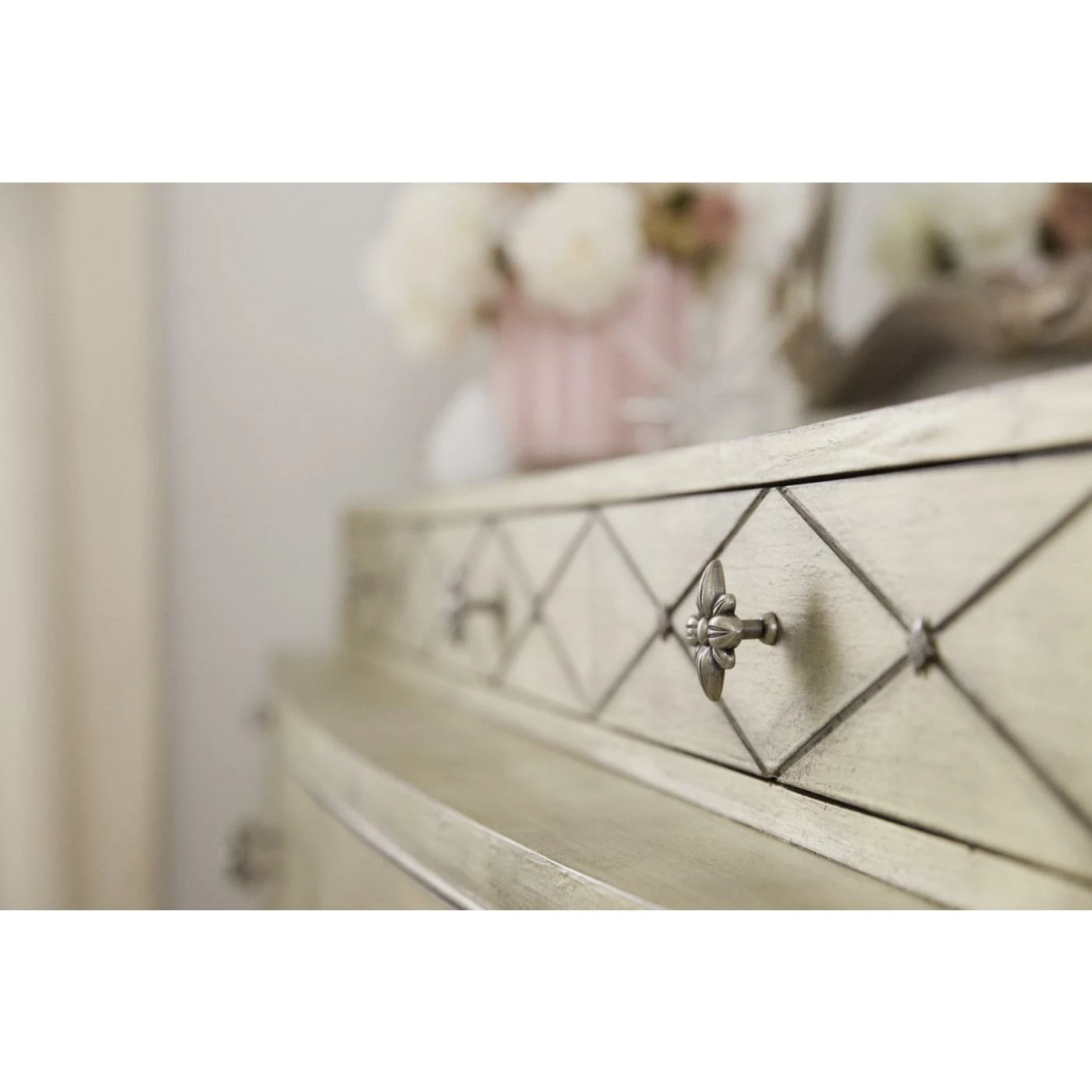 - Jewel, a silver finish with rich undertones of gold and champagne. Antique silver color metal alloy custom decorative pull designed to look like a piece of jewelry.