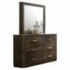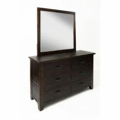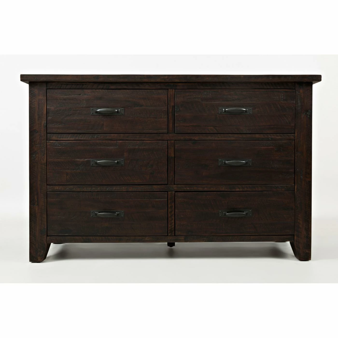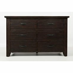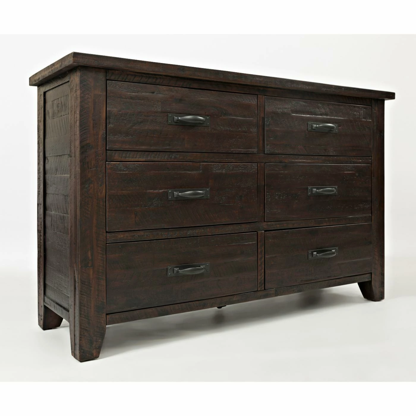 The Jofran Jackson Lodge 6 Drawer Dresser boasts a bold, rustic style for any room in the home. Available as the dresser, or pair it with the Jackson Lodge mirror, the sturdy wood construction will last you a lifetime. The dark brown distressed finish lends this piece a classic, traditional feel.