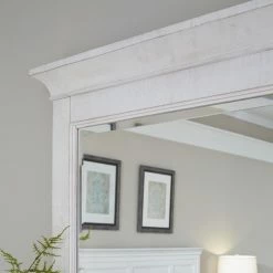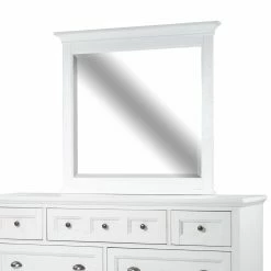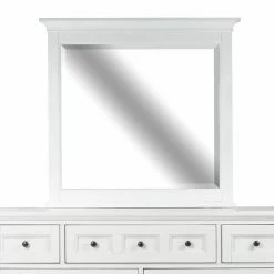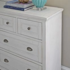 A distressed chalk white finish and shaker influences give the Magnussen Heron Cove Relaxed Traditional Soft White 7 Drawer Dresser with Optional Mirror its cottage vibe. Perfect for inspiring your beachy bedroom, this dresser boasts a roomy top and a collection of seven drawers. To modernize it, the center drawer has a drop-front design and includes cord management at the back. The drawers include two lined in felt, and all have either knob or cup pull hardware in an aged pewter finish. Complete your dresser by adding the optional matching mirror.