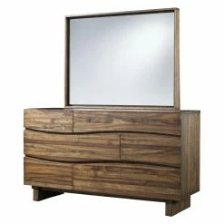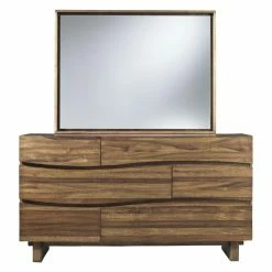The Modus Ocean 6-Drawer Dresser with Optional Mirror is as unique without sacrificing functionality. Graceful undulating waves are cleverly cut into the drawer fronts, hiding the hand pulls routed on the underside so that this serene design is uninterrupted by hardware. This singular dresser is constructed of solid kiln-dried sengon tekik wood finished in a clear matte lacquer to allow the natural wood grain to shine. Each of the six drawers opens effortlessly on full extension ball bearing glides and are built to last with fine English dovetail joinery. Store your precious items in the top drawers, lined with removable felt. For a more complete look, include the optional mirror.