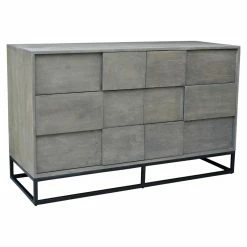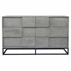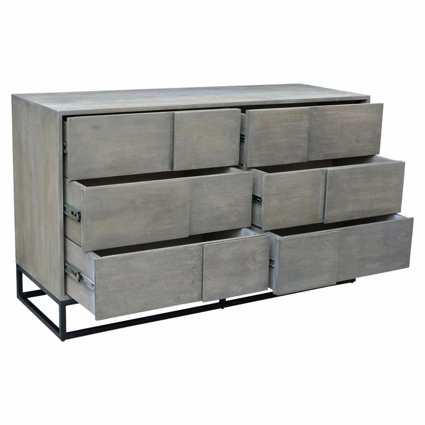 The Moes Home Collection Felix 6 Drawer Dresser is the perfect blend of modern and industrial design. Beautifully crafted with an artful panel design on the drawer fronts, this dresser elevates the style of any bedroom. Its solid acacia wood construction and power-coated iron legs ensure this piece will last. Finished in grey, this dresser complements most decors. Six drawer give you ample space for clothing, blankets, and more.