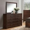 With its rugged charm and ample storage, this Progressive Furniture Meadow 9 Drawer Dresser is a smart choice for your bedroom. Its boasts rough sewn salvaged pine in a thoroughly weathered gray finish that creates that sought after vintage look. Nine solid wood drawers feature metal guides for smooth operation. Two cupboard doors in the center open to reveal one adjustable shelf. Graphite hardware includes round knobs with backplates and simple bar pulls. Add the matching, arched mirror to make this dresser complete.