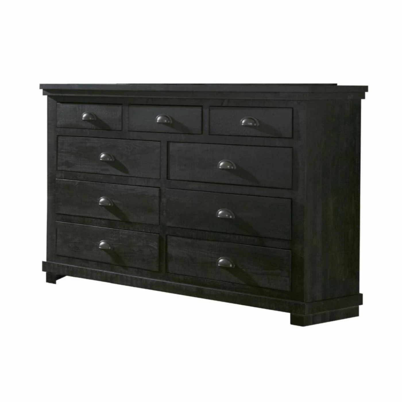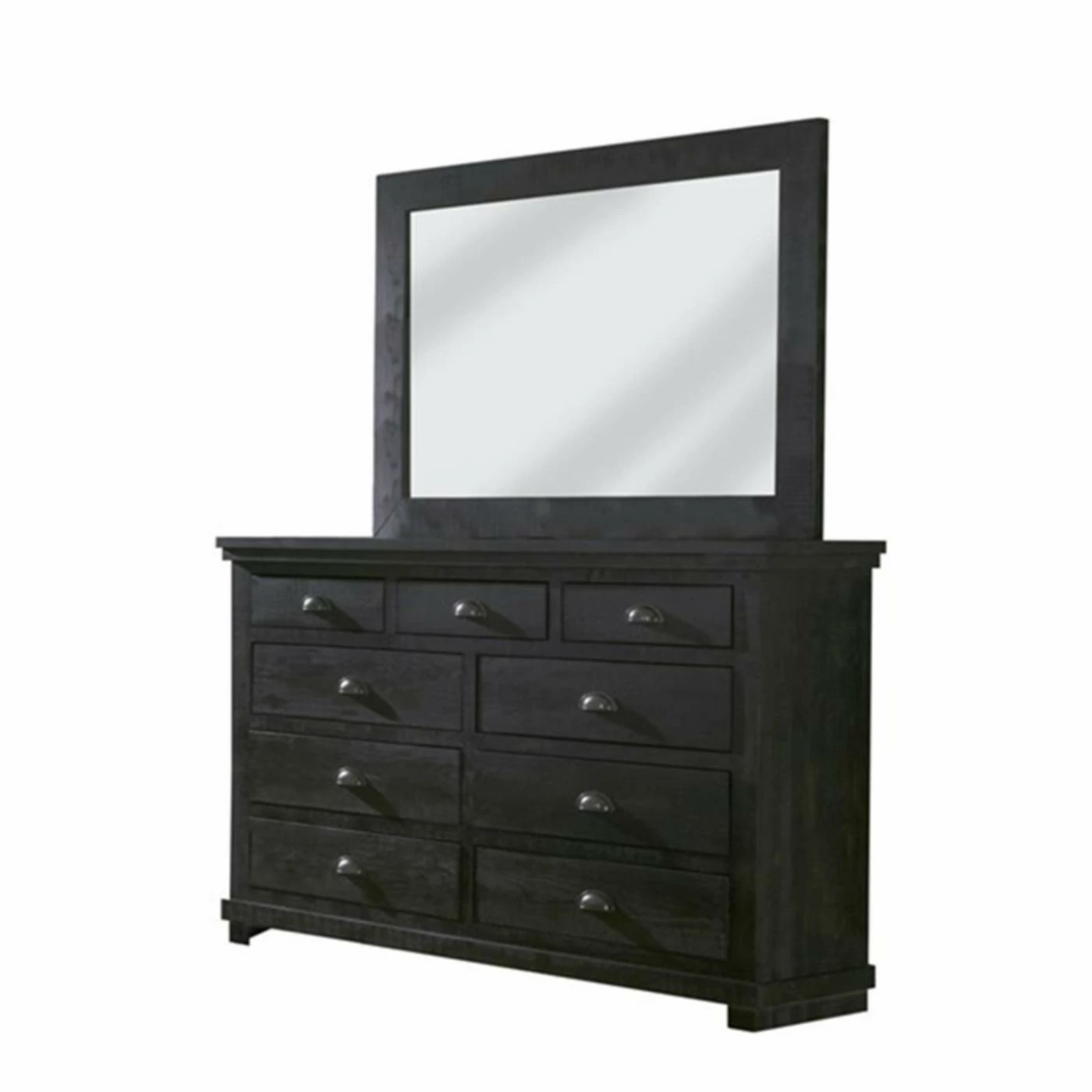 With a variety of exciting finishes to choose from, the Progressive Furniture Willow 9 Drawer Dresser with Optional Mirror can complement any roomβs existing dΓ©cor in spectacular fashion. This generously-sized bedroom organizer possesses hewned edges for a salvaged wood look and rustic appeal thatβs sure to impress. It holds nine pull-out drawers fitted with rounded metal handles, and is available with or without a matching rectangular wall mirror featuring an expansive reflection and thick wood frame.
