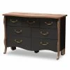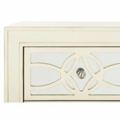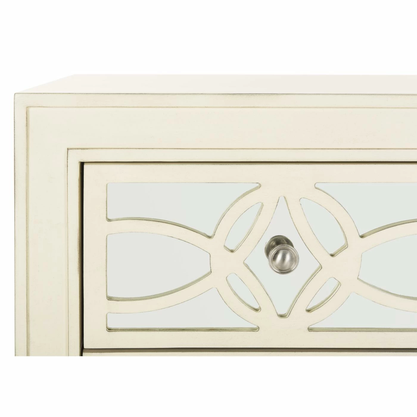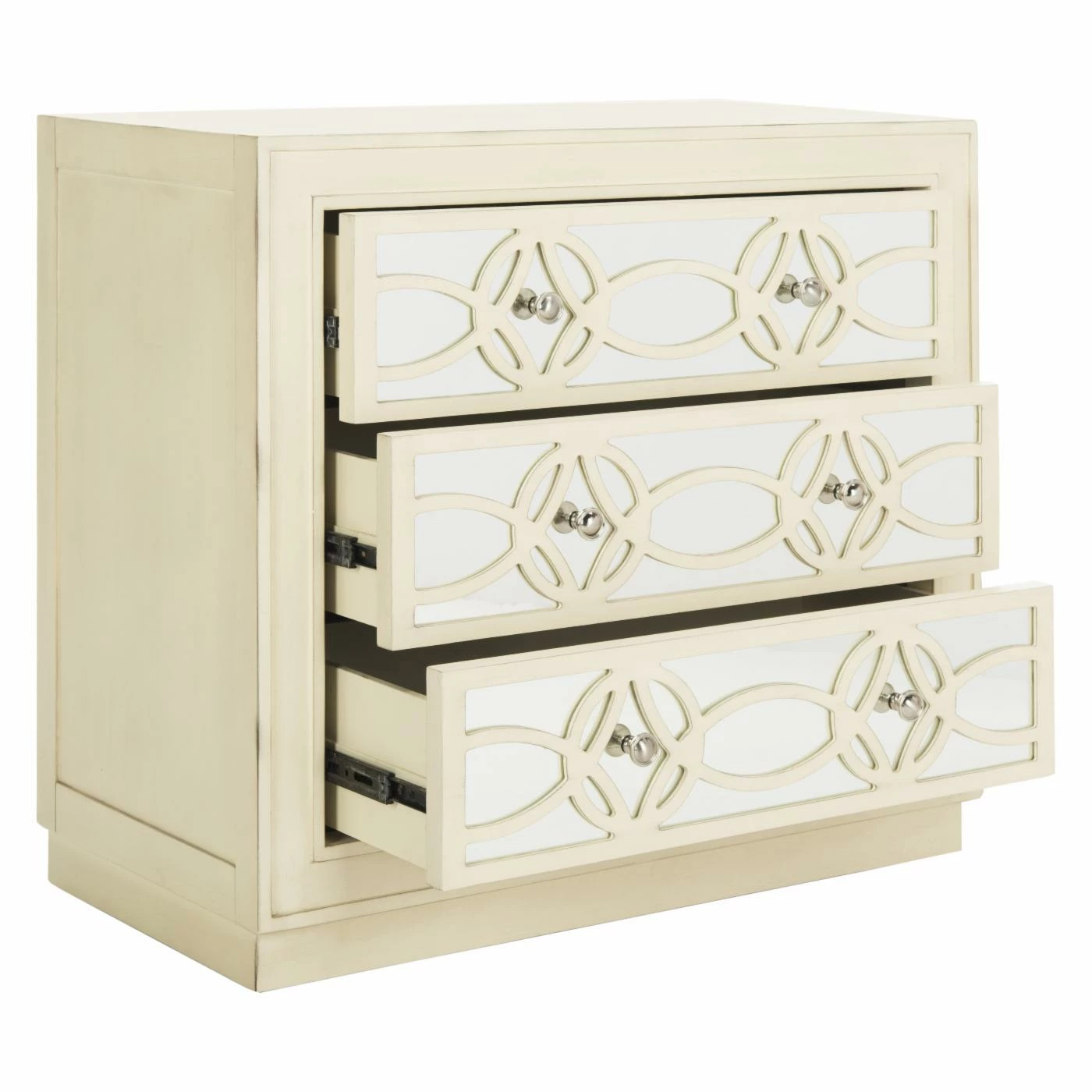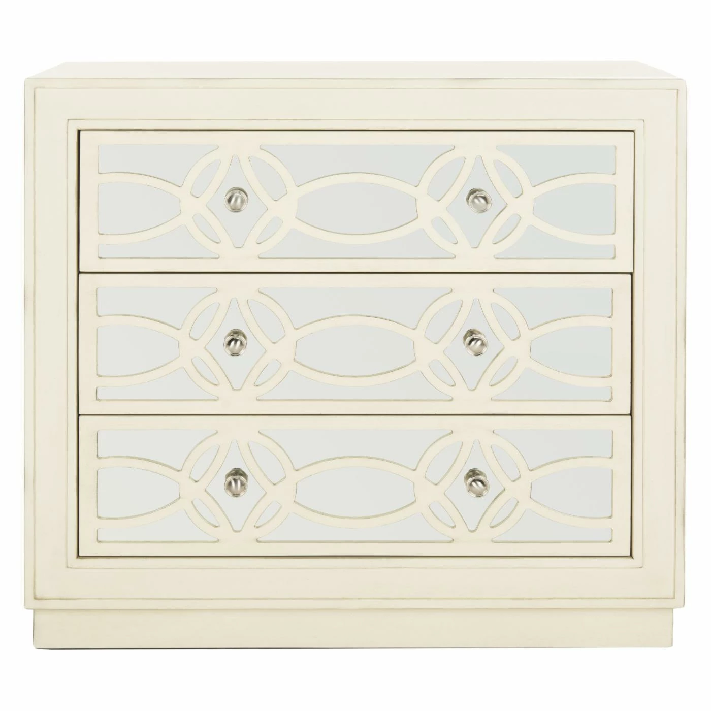 Scrolled overlays and mirrored drawer fronts give the Safavieh Catalina 3 Drawer Dresser its casual elegance. Three roomy drawers on side metal glides ensure you’ll have plenty of storage space with this dresser. It’s built of acacia wood and comes in a neutral, antique beige finish.