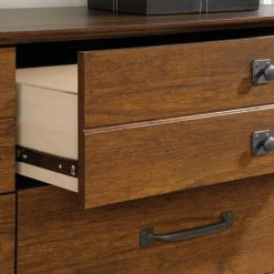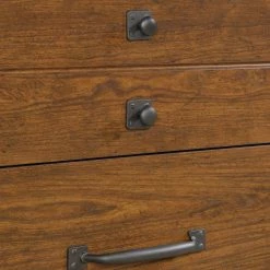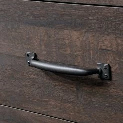 The rugged charm of the Sauder Carson Forge 6 Drawer Dresser is a great way to add timeless design elements to your bedroom. Wrought-iron style hardware throughout pairs and your choice of rustic finish wouldn’t be out of place in a secluded cabin. Crafted of engineered wood, the dresser comes equipped with six drawers with metal runners and safety stops. The patented T-lock assembly system makes it easy to put together, too.