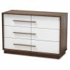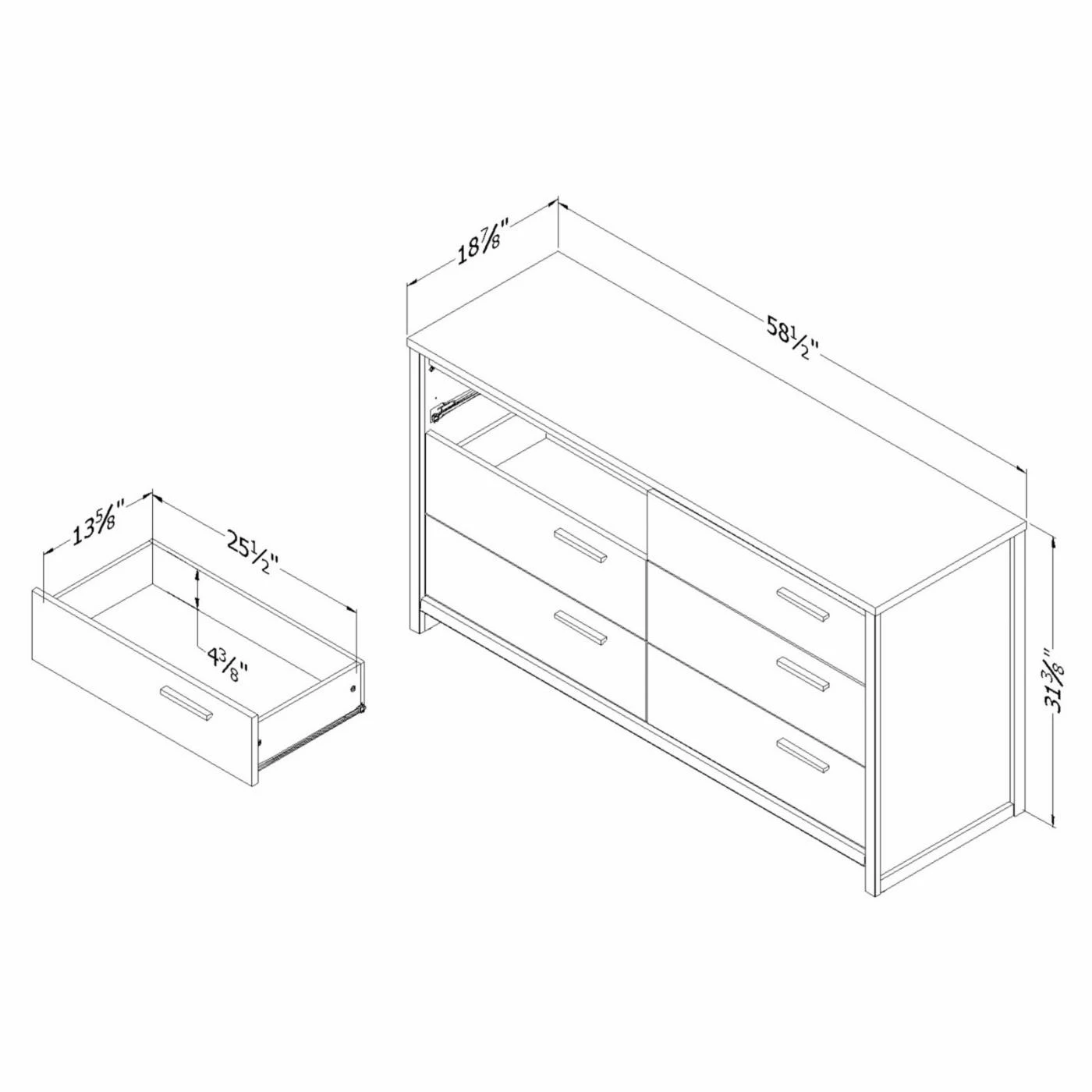 Give your room an unmistakable urban look with the South Shore Tao 6 Drawer Dresser. Stunning in its simplicity, it features a gorgeous choice of finish and wood handles which create a sleek, modern style. Crafted from nontoxic, laminate particleboard, this dresser is made to last for years to come. Its six drawers, with metal drawer glides for smooth, unhindered movement, provide ample storage space for your clothes, blankets, and more. A beautiful addition to any bedroom, you’ll love the distinctive ambiance this dresser adds to your home.