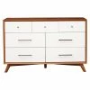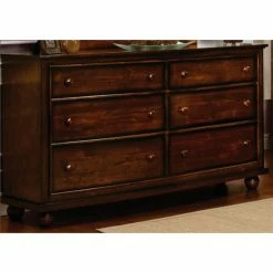 Store a variety of essentials, from sweaters and jeans to your favorite beach-bound items, in the Sunset Trading Bahama Shutter Wood 6 Drawer Dresser. Six spacious drawers offer generous storage space, and the two felt-lined top drawers are ideal for keeping jewelry and other smaller items organized and safe. Each drawer features dovetail construction for lasting quality and durability. This decadent dresser is crafted from acacia wood and select tropical hardwoods that are treated with an eight-step finishing process and topped with a smooth, protective lacquer coating. An optional matching mirror with a fixed open-shutter design brings coastal-cottage appeal to this piece from the Bahama Shutter Wood Collection.