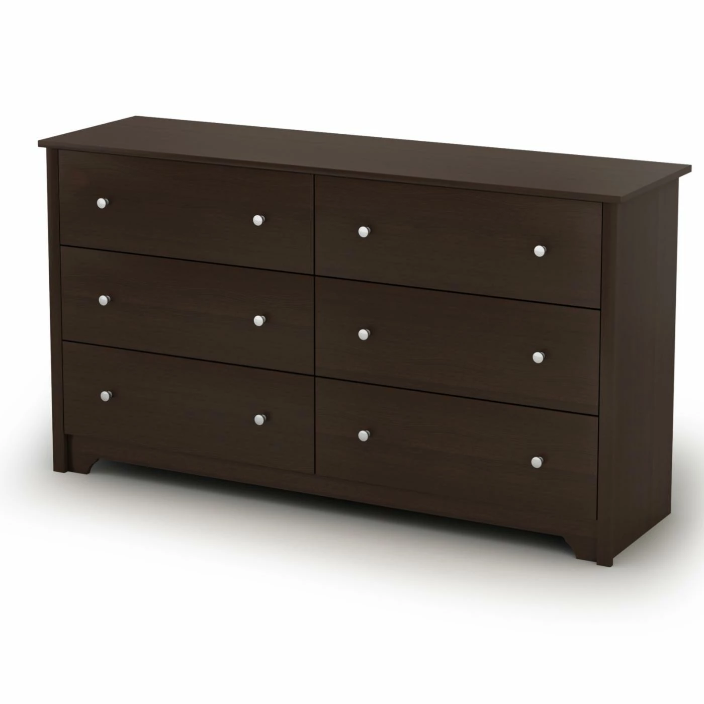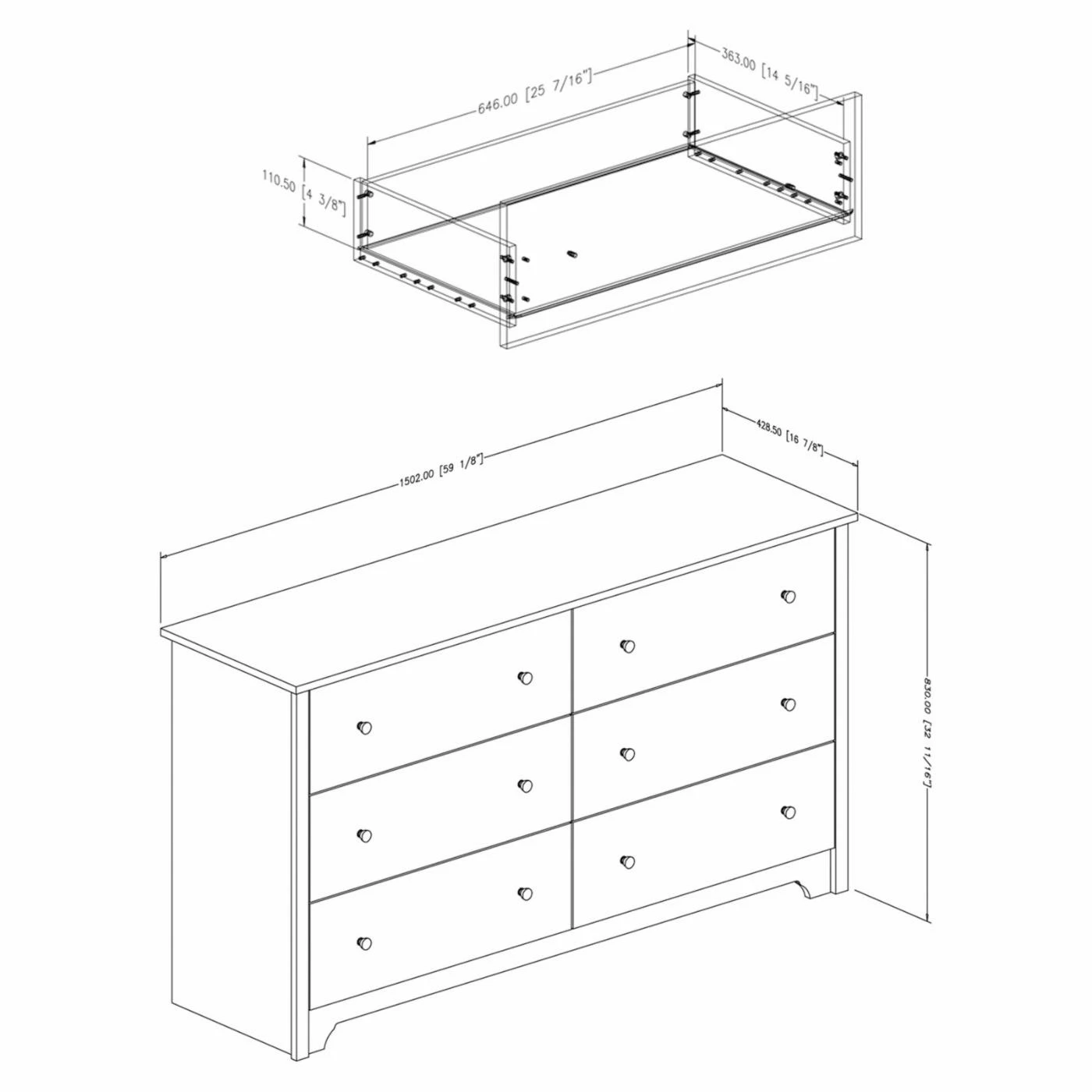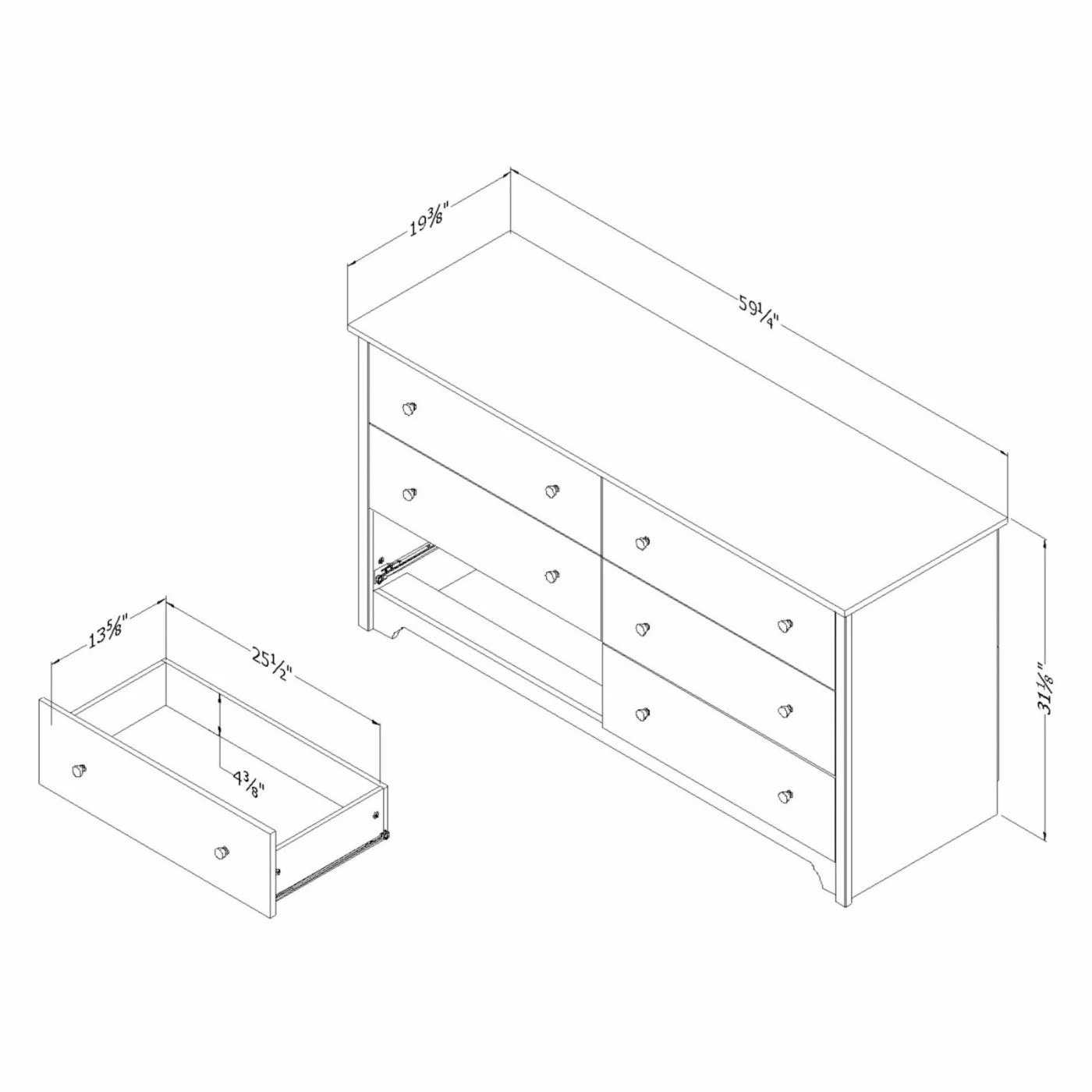 Simple lines and petite metal knobs make the Vito 6-Drawer Double Dresser by South Shore able to coordinate with a wide range of decorating styles. The spacious dresser features six drawers that open and close effortlessly, moving on metal slides. Engineered wood construction ensures lasting durability.