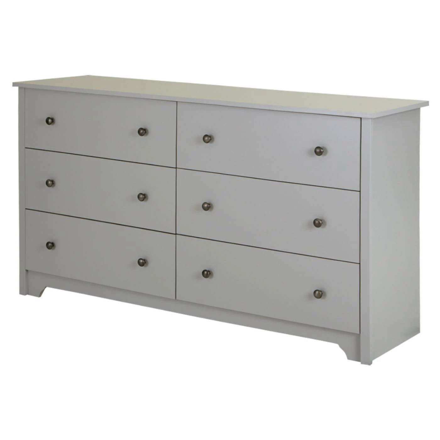 Simple yet sophisticated, the Vito 6 Drawer Double Dresser by South Shore can look at home in casual contemporary and formal traditional bedrooms with equal ease. The double dresser is durably crafted out of engineered wood and comes in your choice of available laminated finishes to match your interior. Petite metal knobs add understated elegance to the design. For easy access to your stored items, the six deep storage drawers move effortlessly along metal slides.