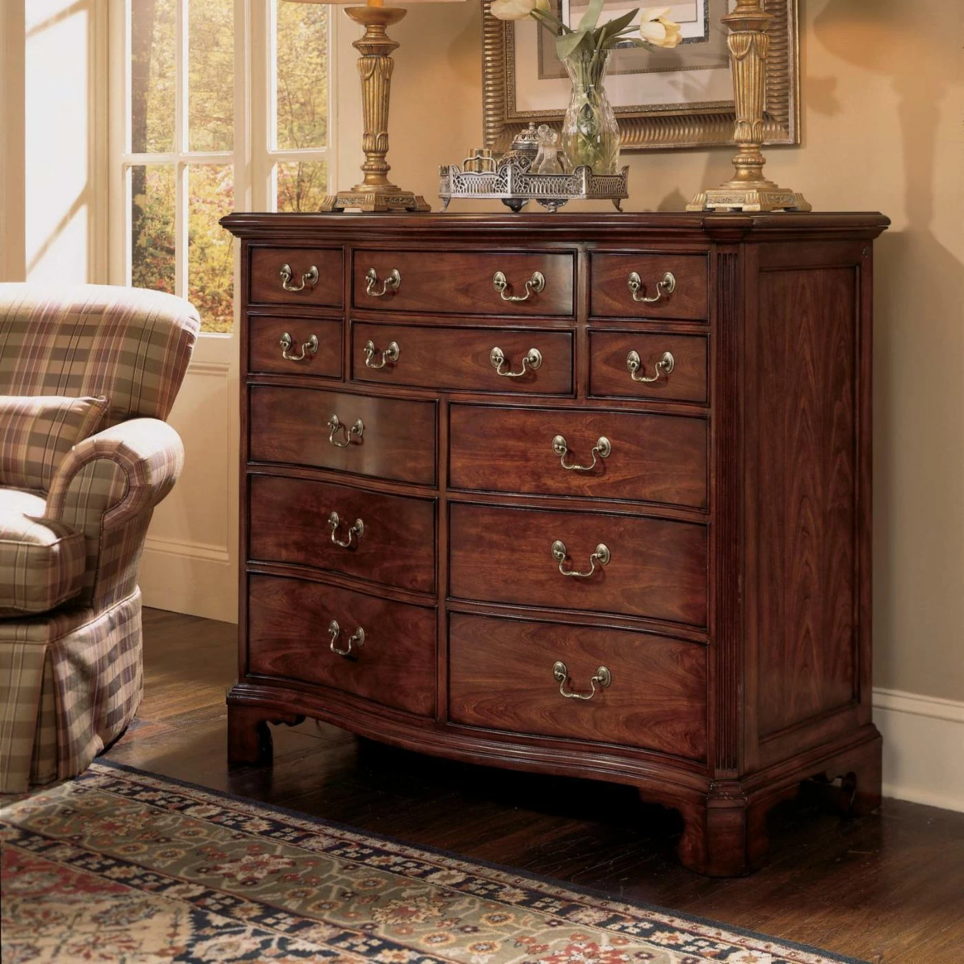 The American Drew Cherry Grove 12-Drawer Gentlemans Chest is a stylish and practical addition to any dΓ©cor. Fine-tune your wardrobe organization with a variety of drawer sizes. From garments to jewelry, everything has a place. Hardwood durability and a spacious upper surface leave plenty of space to display knickknacks. Complete with a deep, antique finish, this chest is made to provide years of enjoyable use.