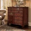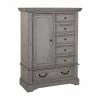 To make it ideal for a modest sized bedroom, the Magnussen Lancaster Gentlemens Chest is loaded with smart storage yet has a small footprint. This gentleman’s chest features a sliding louvered door that reveals six drawers on the left. The right side boasts a clothes rod, two adjustable wood shelves, and two wood drawers. This handsome and handy chest is built of pine solids in a dovetail gray finish with chatter mark details.