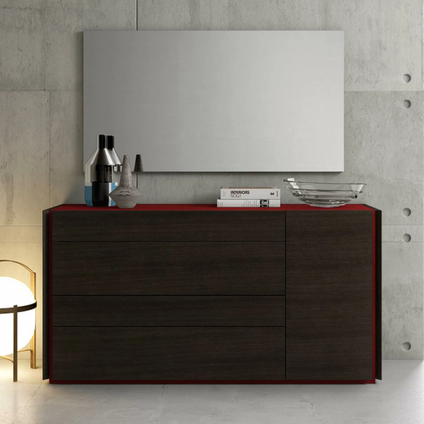 Add a chic pop of color to your contemporary bedroom with the J&M Furniture Lagos 4 Drawer Dresser. This spacious dresser features a two-toned finish with lovely wood veneer complemented by a red lacquer finish. The optional mirror is the ideal pairing for this chic piece. Crafted in Portugal by fine artisans, this dresser will be decorating your home for many years to come. Each of the drawers featured on this dresser are mounted on soft-close tracks.