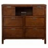 An elegant amalgamation of traditional style and modern convenience, the Messina Estates Media Chest provides a handsome media center and additional storage. Well-constructed from hand-selected hardwoods and birch veneers, the chest is finished in a rich medium shade of cognac brown. The top accommodates a TV measuring up to 53 inches wide, while open shelving below stores a DVD player, game consoles, and a stereo system in your bedroom or family room.