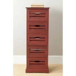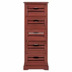 A slatted design gives the HN Home Gunnison Modern Farmhouse 5 Drawer Cabinet a breezy and coastal quality. You can use the sturdy solid pine and mahogany cabinet to house media in the living room, winter accessories in your entryway, or linens in the bathroom. With five deep sliding drawers, the storage possibilities are seemingly endless, and the vertical design creates a compact footprint that requires minimal space in your floor plan.