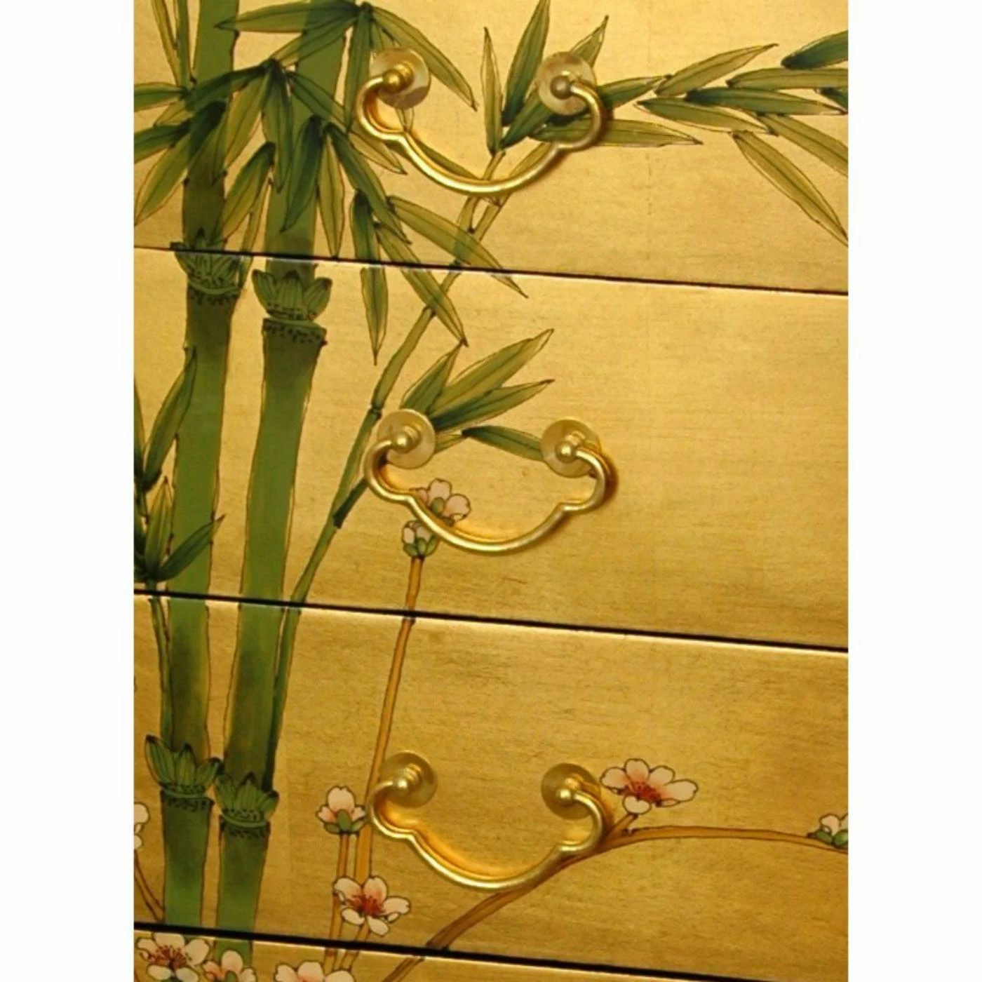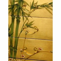 The Oriental Furniture Gold Leaf Eight Drawer Cabinet is teeming with elegance and traditional Asian flair. This fine piece of furniture is hand-crafted from Elm wood and has a luxurious gold leaf overlay that’s topped with an intricate hand-painted bird and floral motif. The cabinet is designed with high-quality carpentry and joinery, and has dovetail drawers that will withstand constant, long-term use. Use it to organize your lingerie, office supplies, or a wide range of household items.