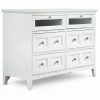 Designed to dazzle, the Furniture of America Andriani 2 Drawer Media Chest updates vintage Hollywood glamour to accommodate today’s lifestyles. Antique mirror panels border this media chest and reflect its sophisticated style. Up to a 42-inch flat screen TV rests on top and just below are two generous media component openings plus cord management holes at the back. Antique-inspired ring pulls open the two spacious, full extension drawers.